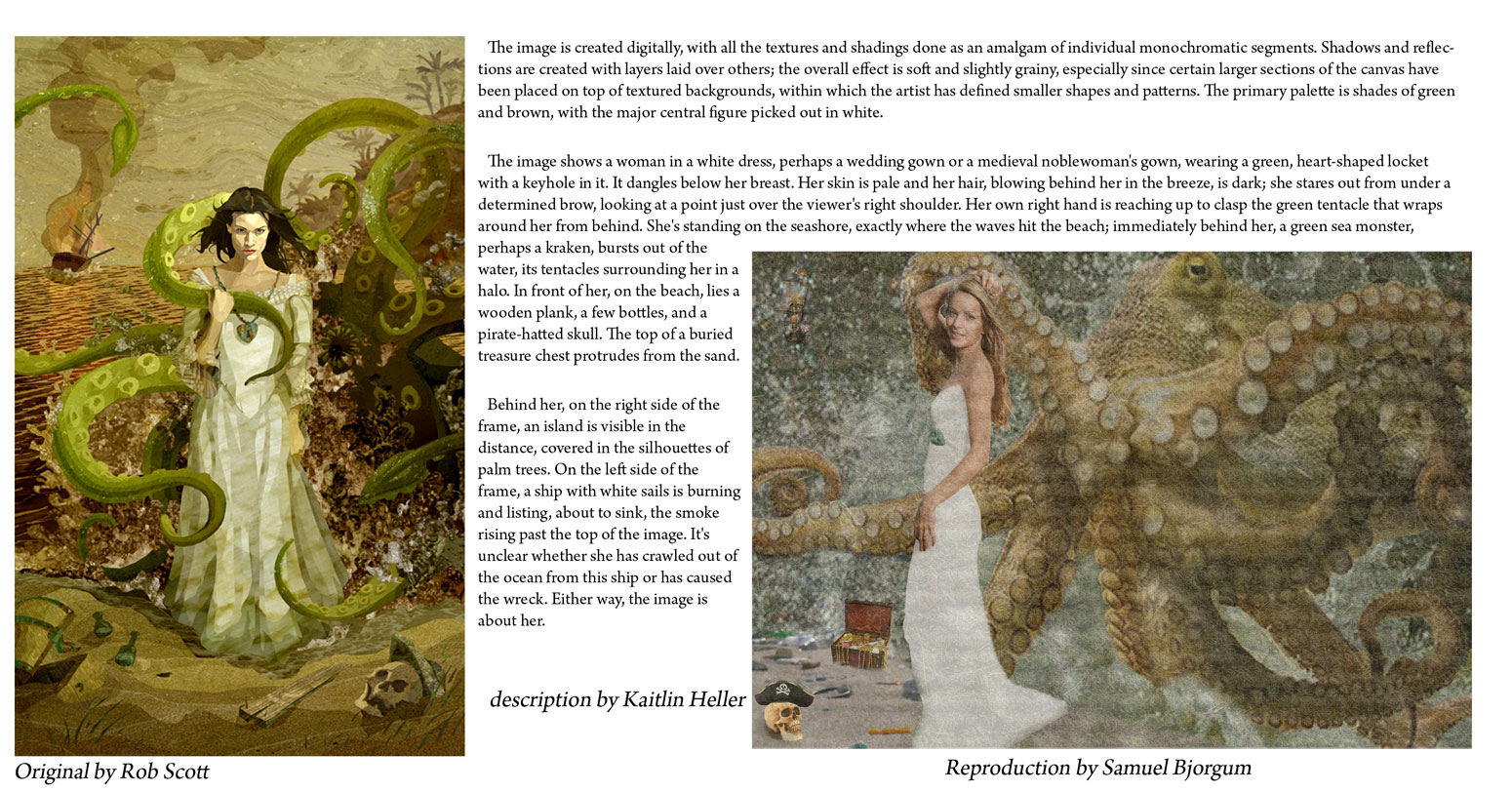 | R Scott “Bride of Davey Jones” digital, inkjet print 11x18in 2009 $100 | Samuel Bjorgum “Woman in a White Dress” Inkjet print of digital, 18x12in 2009 $100 |