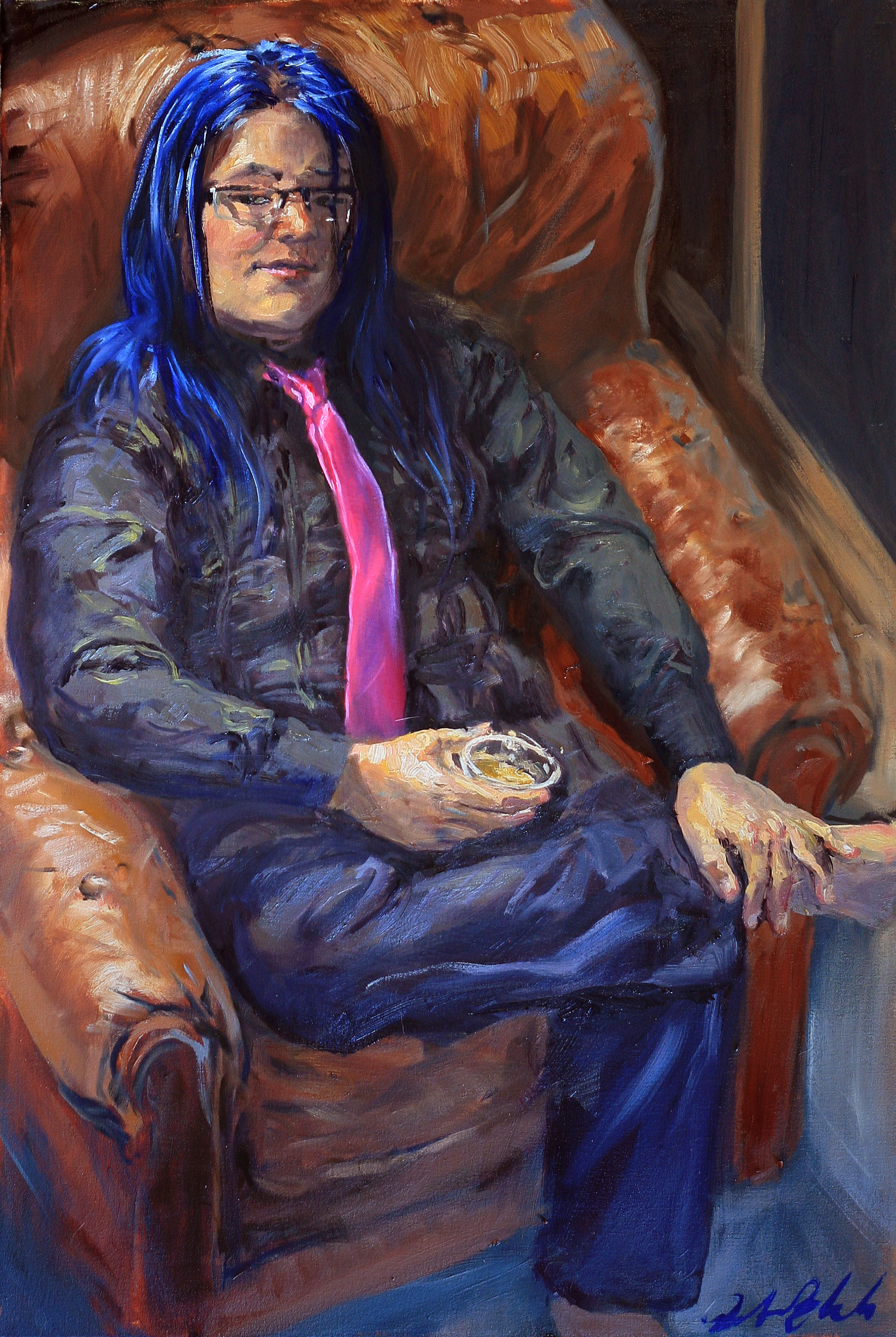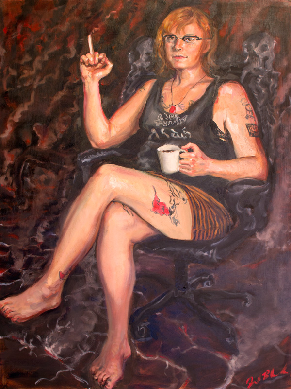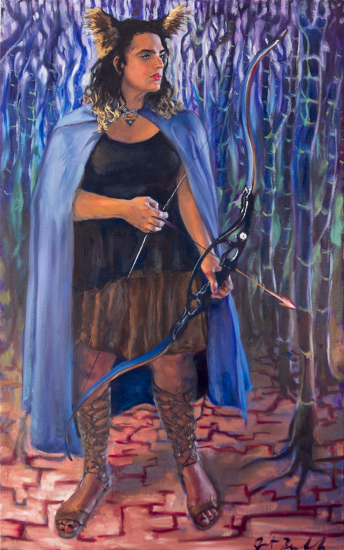 Daughters of Mercury is a series of 23 full-length oil paintings Bruesselbach painted from 2014-2016 celebrating the beauty and diversity of trans women. Each portrait was driven by how the subject wants to be seen. Bruesselbach considers these portraits introductions to people she loves and admires, seeking to support their lives and work, and encouraging the same. Each portrait is accompanied by a biography or text by the subject so as to amplify voices of trans experience.