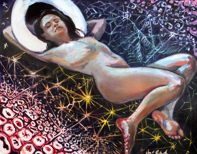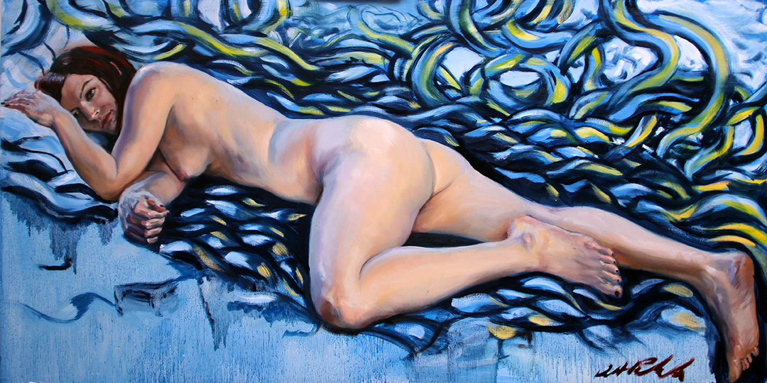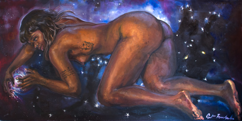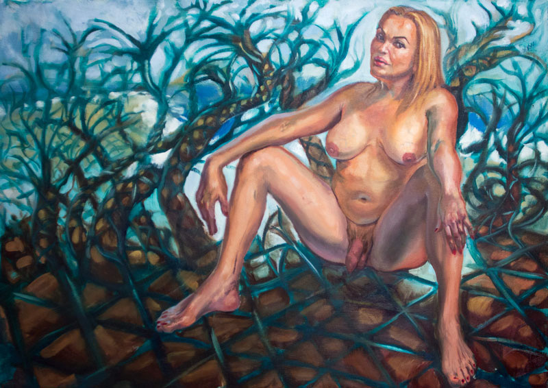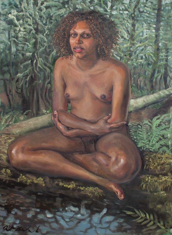 Daughters of Mercury engages with cissexist assumptions about female bodies in representational painting, and advocates for more trans women in fine art. Trans artists are increasingly making work that eclipses the inevitable issues (arguably still present here despite maximum ethical care) with depictions by cis artists, which are often about the novelty or conformity of trans bodies, and often either overly sexualized or desexualized without regard for self-representation. While cis women’s bodies have long been used as a stand-in for beauty itself, trans women’s bodies were either erased or not regarded as beautiful in the same way. These portraits are one of many ways to re-conceive female beauty.