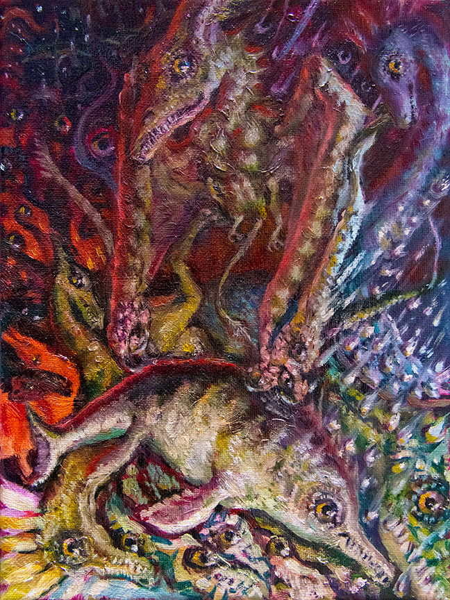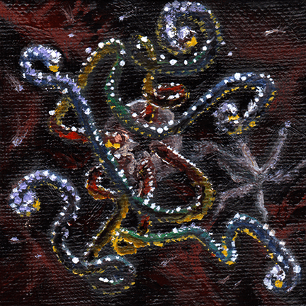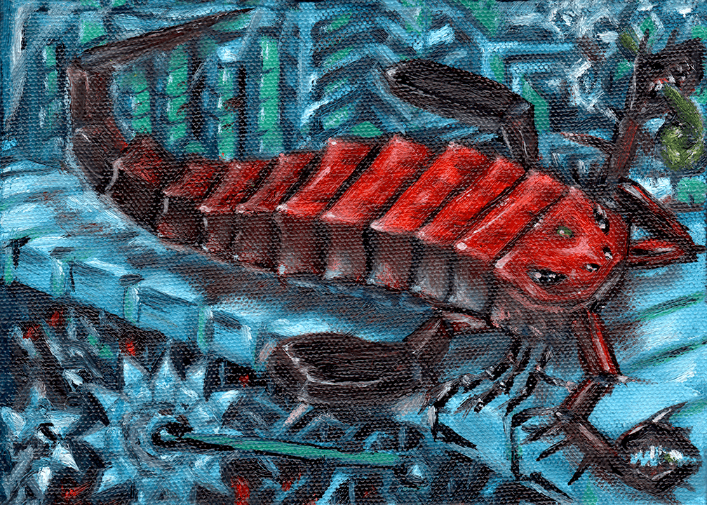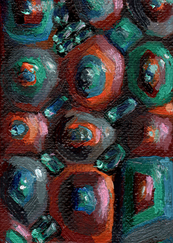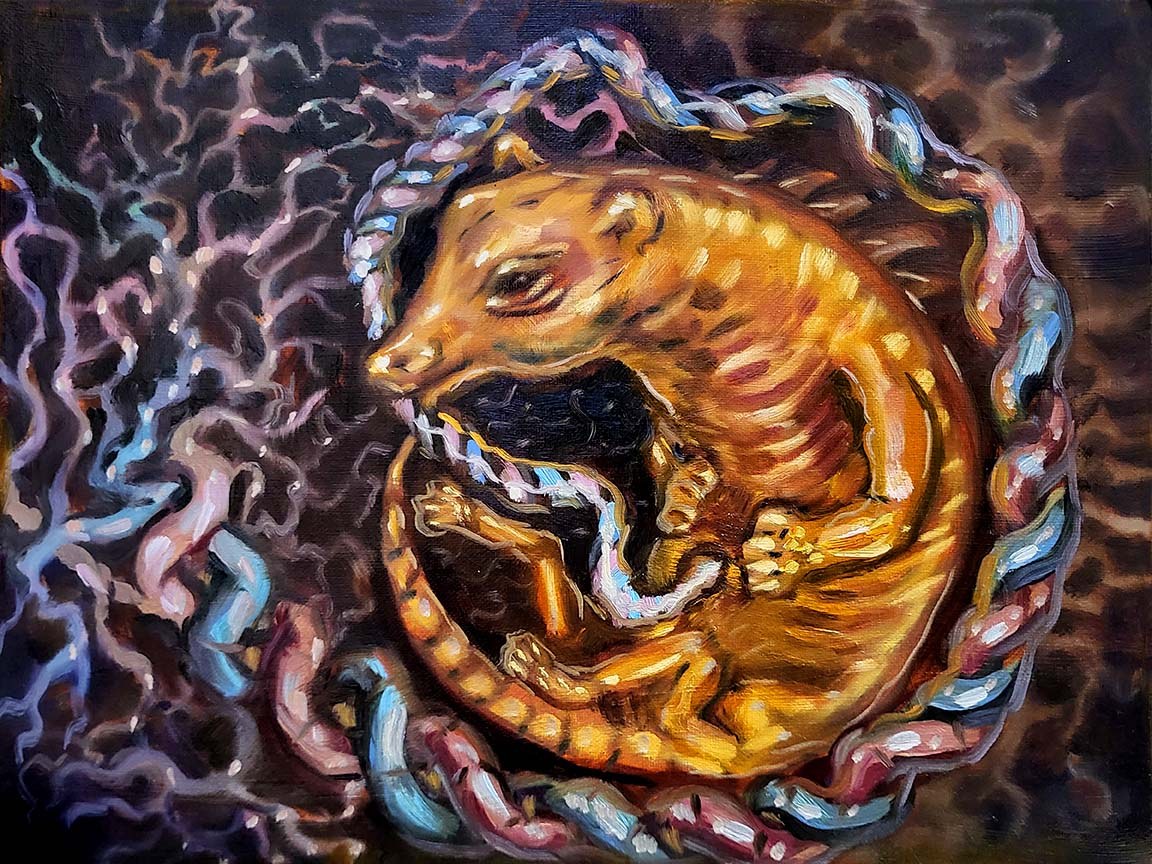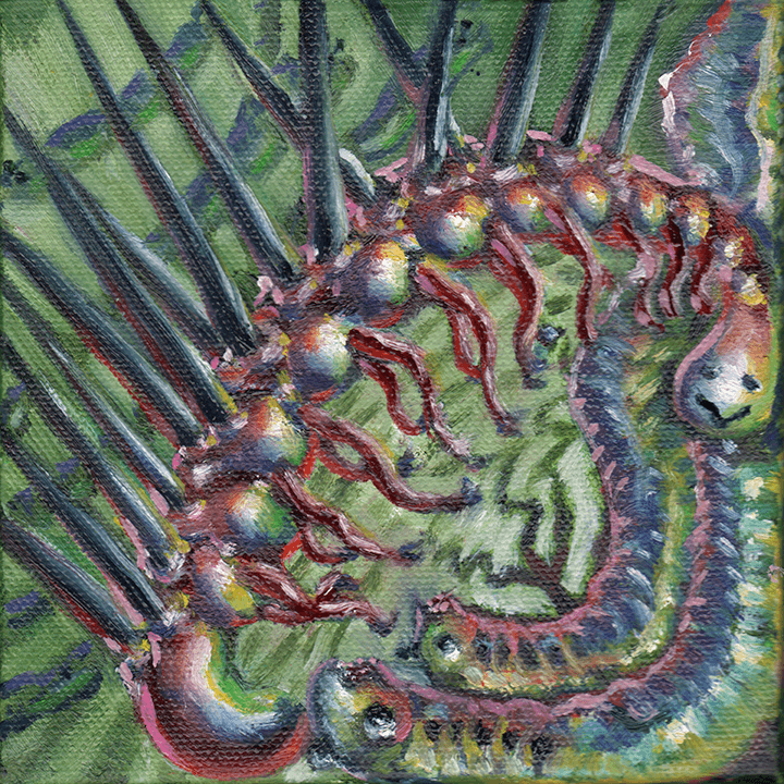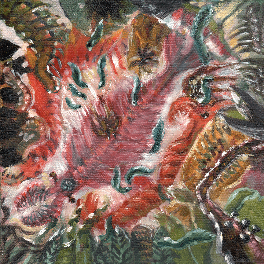 A series of tiny paintings exploring the deep history of Terran biotech.